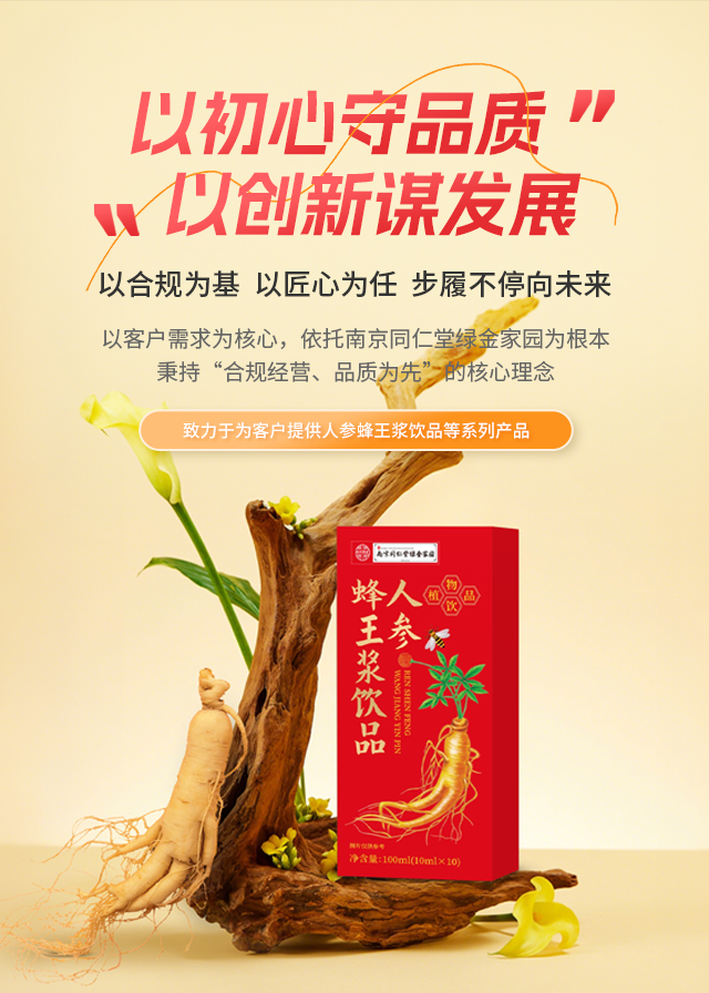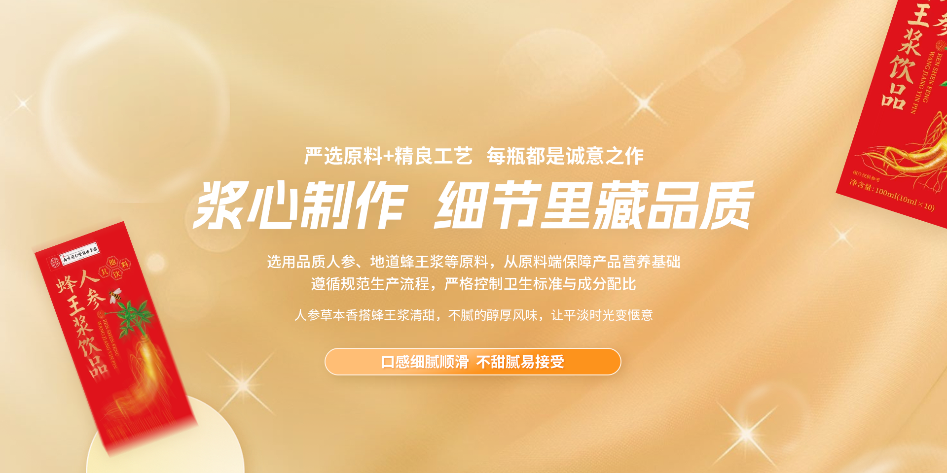 公司核心产品包含人参蜂王浆等,从成立开始,始终将产品质量置于前列,从生产到呈现全程严格把控,以精良工艺与厂家实力保障产品可靠。